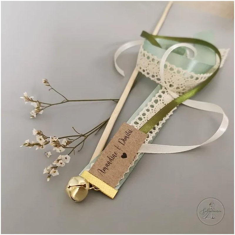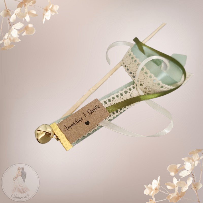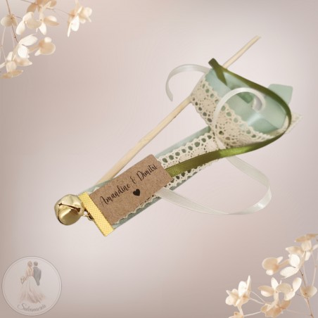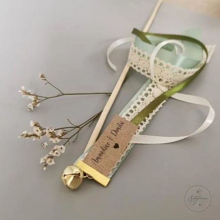 Bâton ruban (dont 1 ruban dentelle) mariage avec grelot - Étiquette Personnalisée