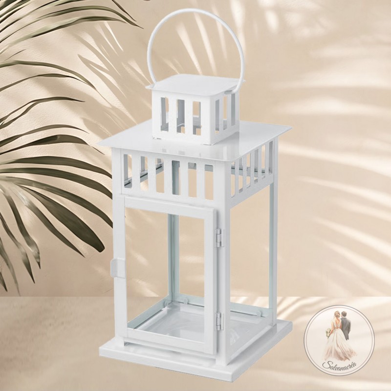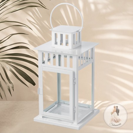 Lanterne pour bougie pilier ou fleurs, sans vitre. Idéal pour votre allée de cérémonie. A suspendre sur un piquet ou à poser le long d'une l'allée. Hauteur 28 cm, largeur 15 x 15 cm.