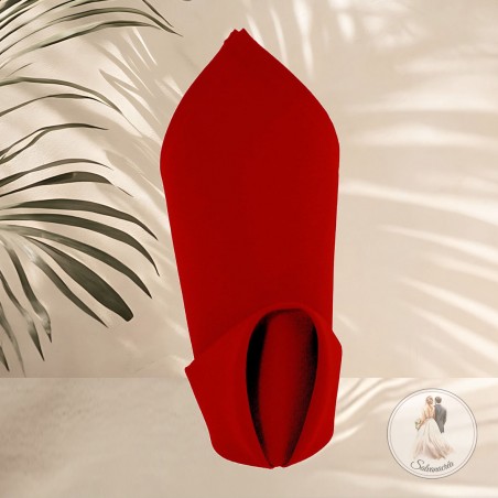 Serviette en tissu, rouge, dans les dimensions standards (carré, environ 40 x 40cm). Parfait pout tout évènement, mariage, fête d'entreprise. La serviette est rendue sale dans le bac prévu à cet effet.