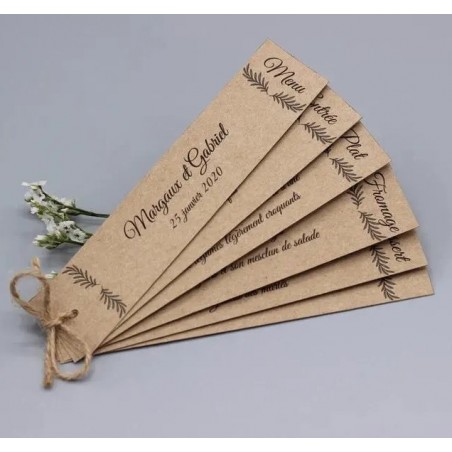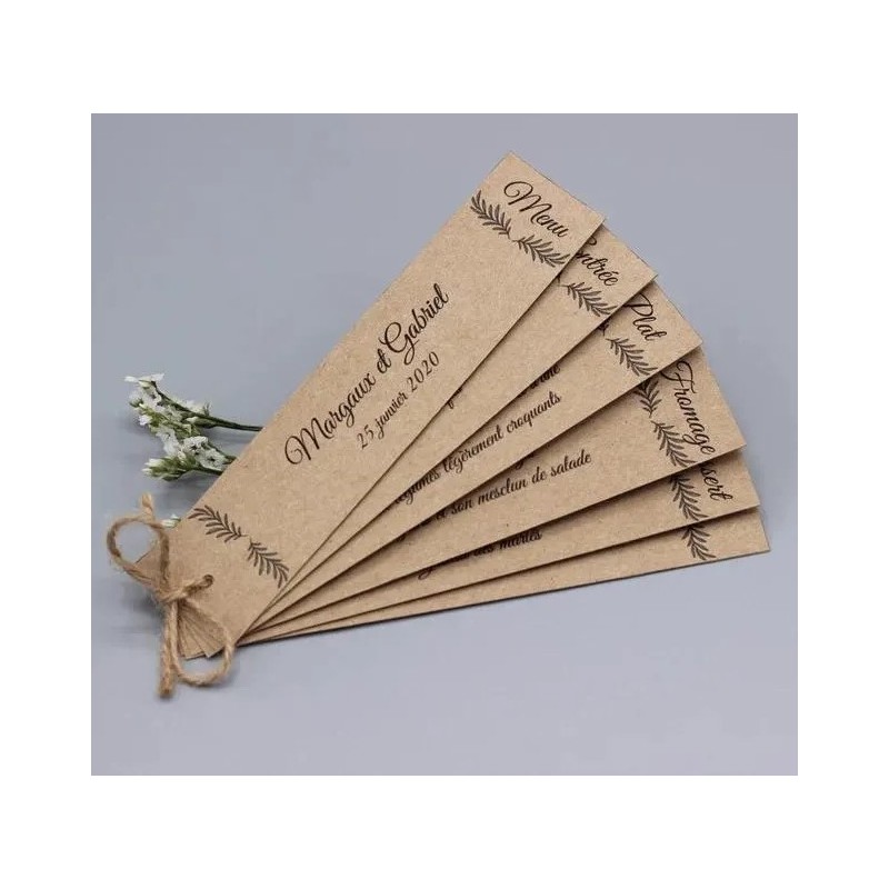 N'oubliez pas de sauvegarder votre personnalisation pour pouvoir l'ajouter au panier. Vous recevrez sous 48h (hors week-end) un visuel à me valider avant toute confection du produit.Menus Éventail mariage, baptême ou autre événement - Déclinable en faire-part.